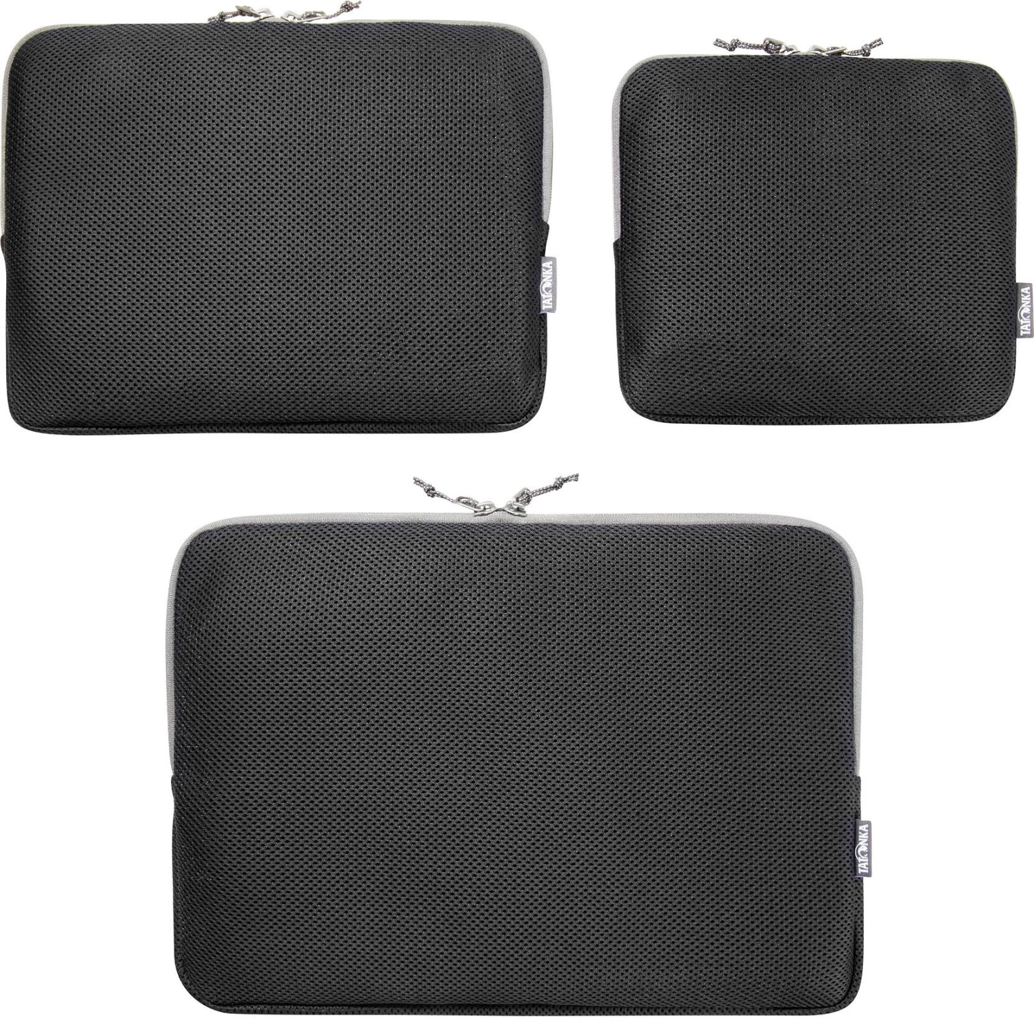 Flaches, leicht gepolstertes Netztaschen-Set mit Reißverschluss in drei verschiedenen Größen: Tatonka Air Mesh Pocket Set III Die gepolsterten Taschen eignen sich zur Unterbringung stoßempfindlicher Ausrüstung, insbesondere flache elektronische Geräte wie Tablets, Laptops oder E-Book-Reader lassen sich sicher verstauen.