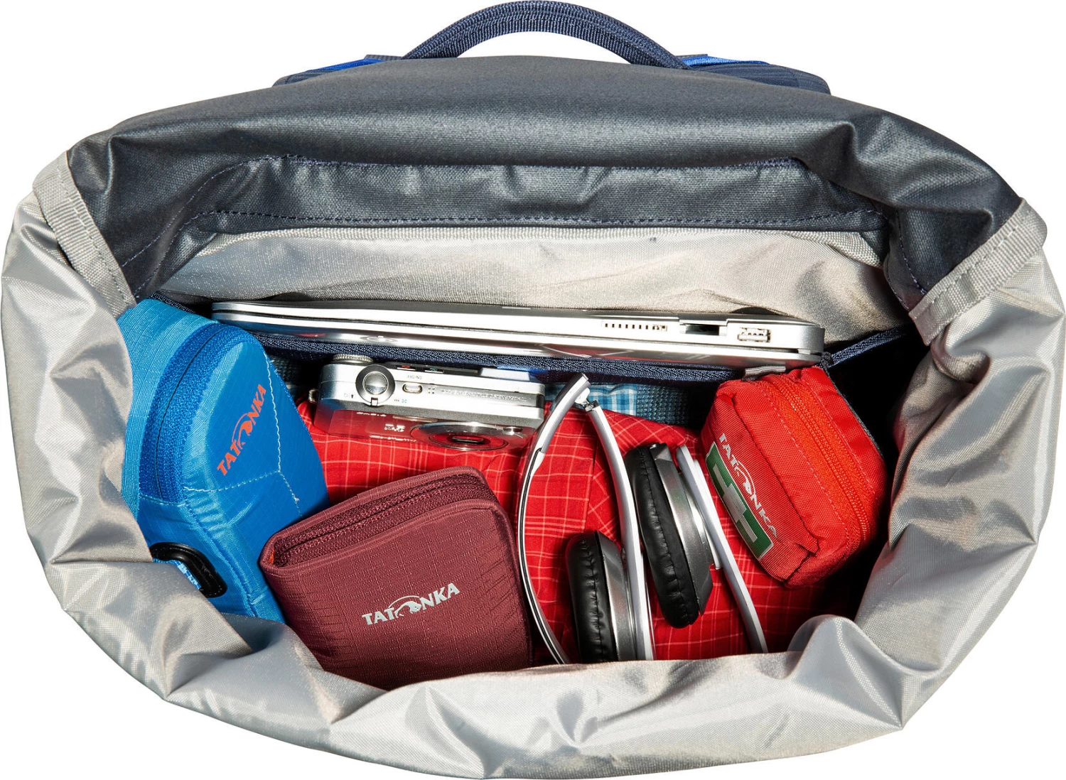 Großer Kurierucksack: der Tatonka Grip Rolltop Pack Dieser große Rucksack mit Rollverschluss trumpft mit einem ordentlichen Platzangebot auf. Der Tatonka Grip Rolltop Pack schluckt locker zwei breite A4-Ordner – oder auch mal den Einkauf.Roll-Top-Rucksack mit gepolstertem Laptop-Fach Der Grip Rolltop Pack bietet ein gepolstertes Laptopfach für einen 15-Zoll-Laptop und zwei praktische Seitentaschen. Durch den gepolsterten Rücken und die ergonomisch geformten Schultergurte trägt sich der Grip Rolltop Pack sehr komfortabel. Die Fixierungsmöglichkeit auf der Front kann zum Beispiel für ein Blinklicht genutzt werden.