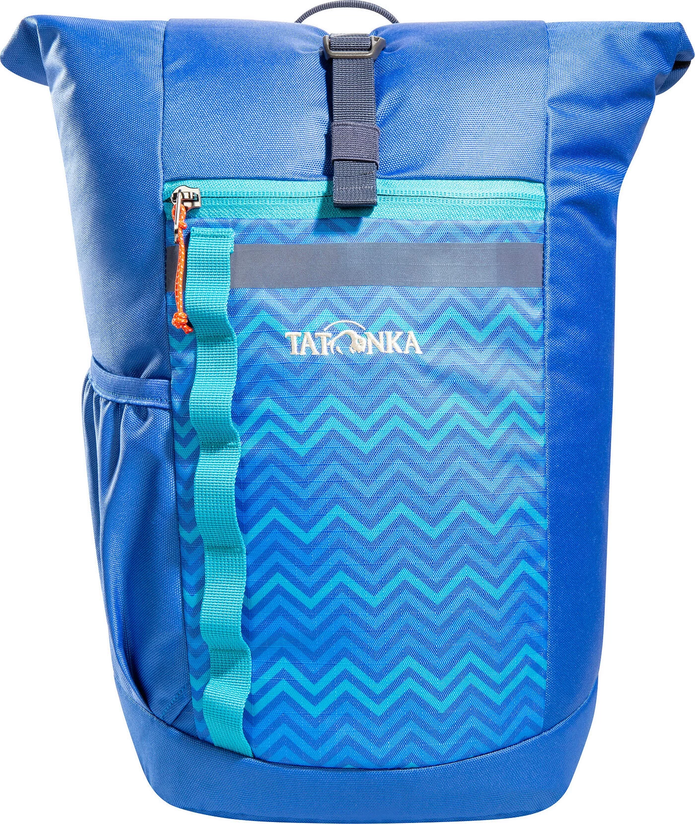Tatonka Kinderrucksack für Grundschulkinder: der Kurier-Rucksack Rolltop Pack JR 14. Anteilig aus recycelten Materialien gefertigt und PFC-frei ausgerüstet. Dieser trendige Kurier-Rucksack für Kinder im Grundschulalter bietet viel Platz im Hauptfach: Ob für den Schulausflug, die Übernachtung bei der Oma oder den Sportverein – der Rolltop Pack JR 14 steckt alle benötigten Klamotten locker weg. Der Rolltop Pack JR 14 wird mit einem Rollverschluss verschlossen, er besitzt aber zusätzlich auch einen Reißverschluss. Eine Reißverschlusstasche auf der Front bringt das Portemonnaie oder Handy unter, und die Seitentasche ist zum Beispiel für eine Trinkflasche vorgesehen. Auch ein praktisches Sitzkissen gehört zur Ausstattung des Kinder-Daypacks. Farbige Reflexstreifen auf der Front und den Schultergurten erhöhen die Sichtbarkeit in der Dämmerung.GREEN by Tatonka Der Rucksack ist mit dem Label GREEN gekennzeichnet, weil er anteilig aus recycelten Materialien gefertigt ist. Er ist außerdem PFC-frei ausgerüstet.
